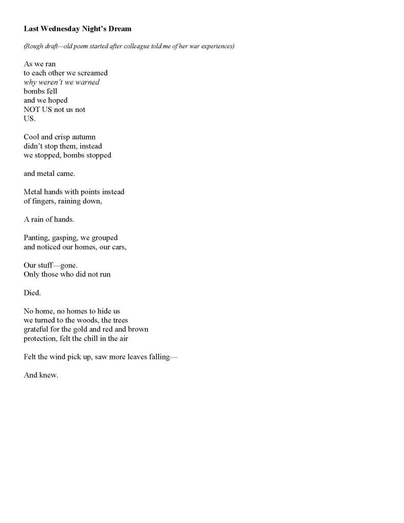 To M–who survived four years of an urban modern sniping war. I met her as a teaching colleague years later.